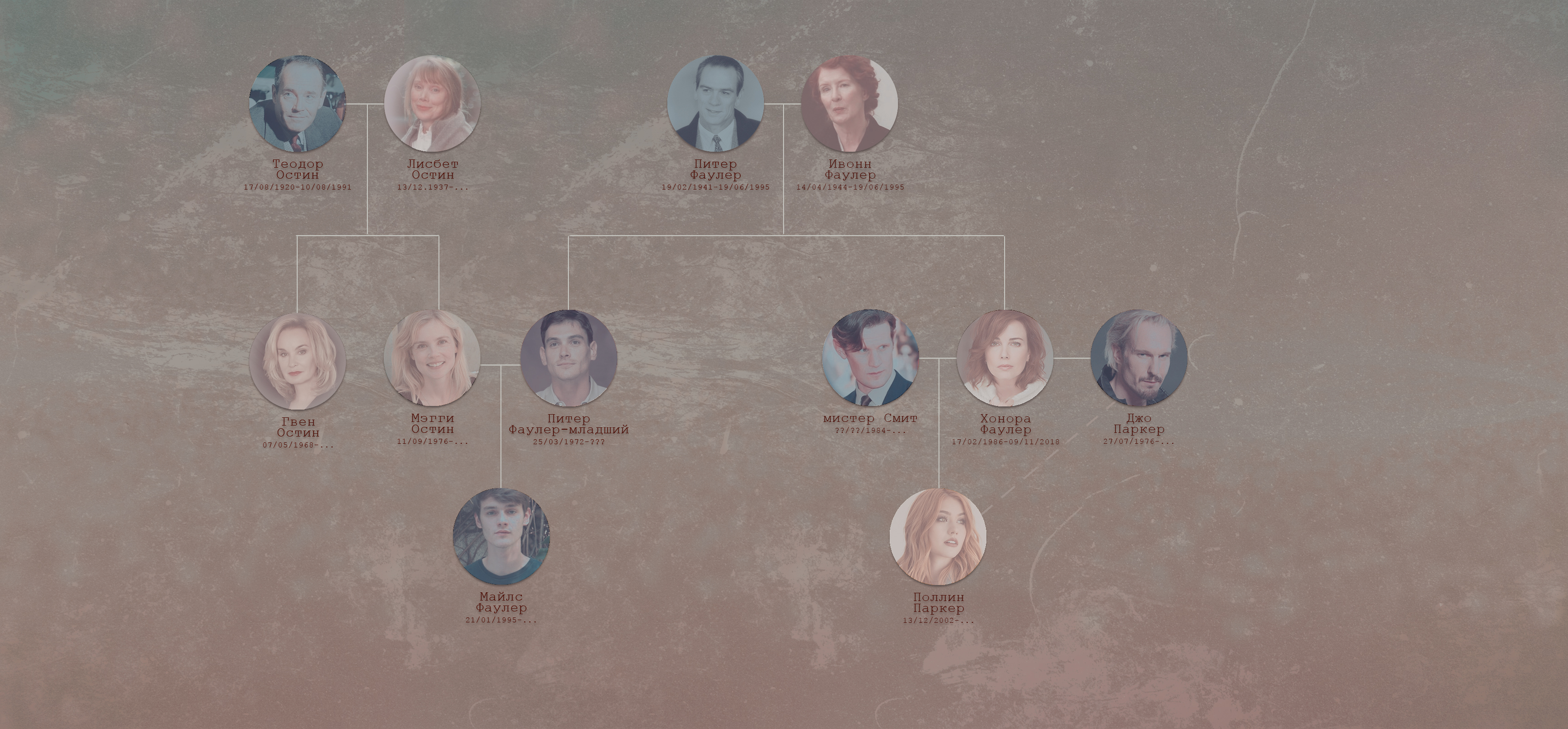 — почти вся семья живет на ферме под Белфастом - тетя Гвен с мужем и пятеро ее детей, бабушка Лисбет и мама Майлса, Мэгги. Отец исчез, а его родители погибли в прошлые тревожные годы. Кузина Полли, приехавшая в Хэйвен, поселилась у Майлса; летом 2020 обзавелся новыми друзьями; — находится в сложных и неоднозначных отношениях;